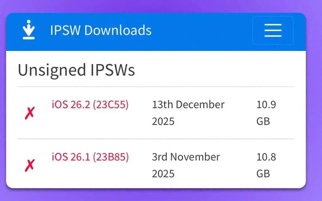 除iOS 26.2外,苹果还同步关闭了iOS 12.5.7、iOS 15.8.5、iOS 16.7.12以及iOS 18.7.3多款老旧系统的验证通道,这些版本的系统将彻底退出官方可安装序列,用户无法再通过正规渠道恢复至这些版本。