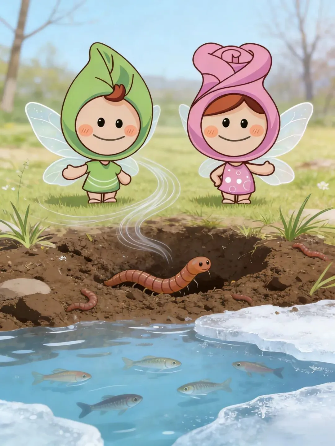 中国古代一些著作将立春的十五天分为三候:“一候东风解冻,二候蜇虫始振,三候鱼陟负冰”,说的是东风送暖,大地开始解冻。立春五日后,蜇居的虫类慢慢在洞中苏醒,再过五日,河里的冰开始溶化,鱼开始到水面上游动,此时水面上还有没完全溶解的碎冰片,如同被鱼负着一般浮在水面。