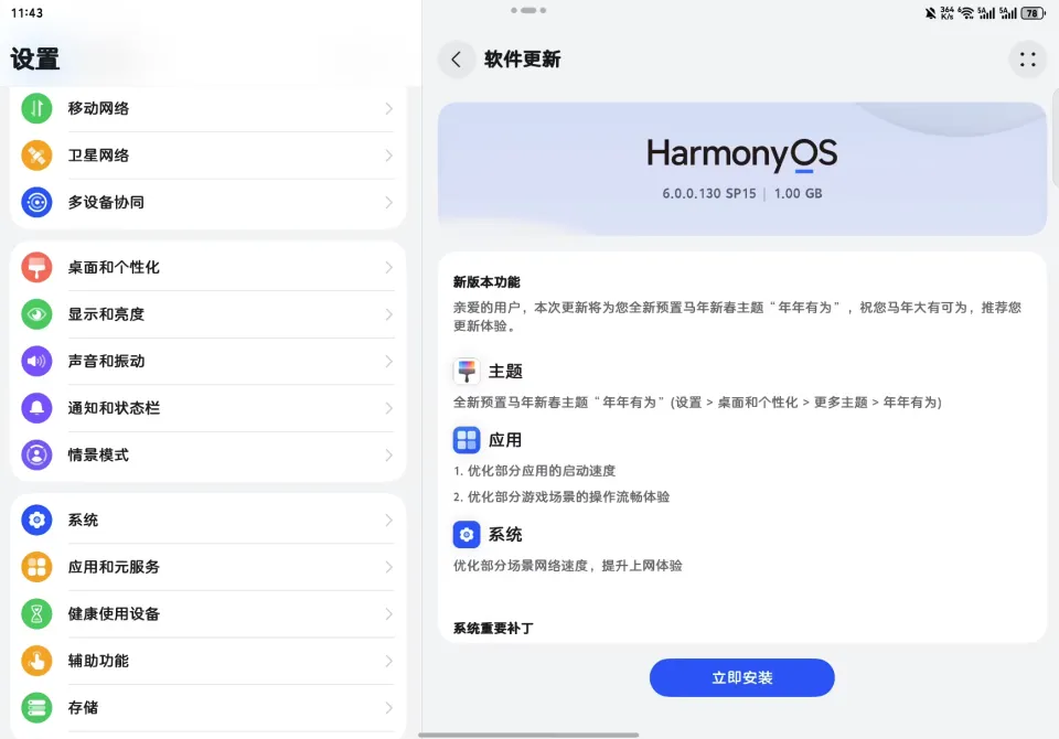 据了解,华为面向Mate 70、Mate 60、Mate X6、Pura 80、Pura X等多款旗舰机型正式推送了HarmonyOS 6.0.0.130 SP15版本更新,系统包大小约1.05GB,主打基础体验优化。