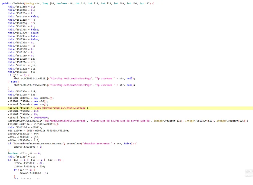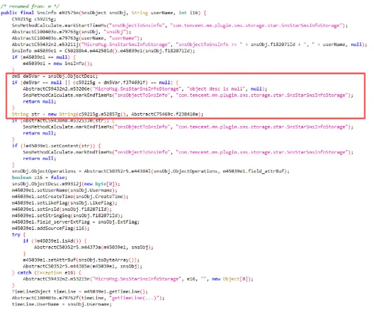 首先根据绿泡泡日志,定位到朋友圈模型类com.tencent.mm.plugin.sns.model.m3