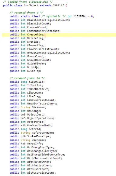 我们在onGYNetEnd源码中发现,开发者将SnsObject转化为了SnsInfo类
