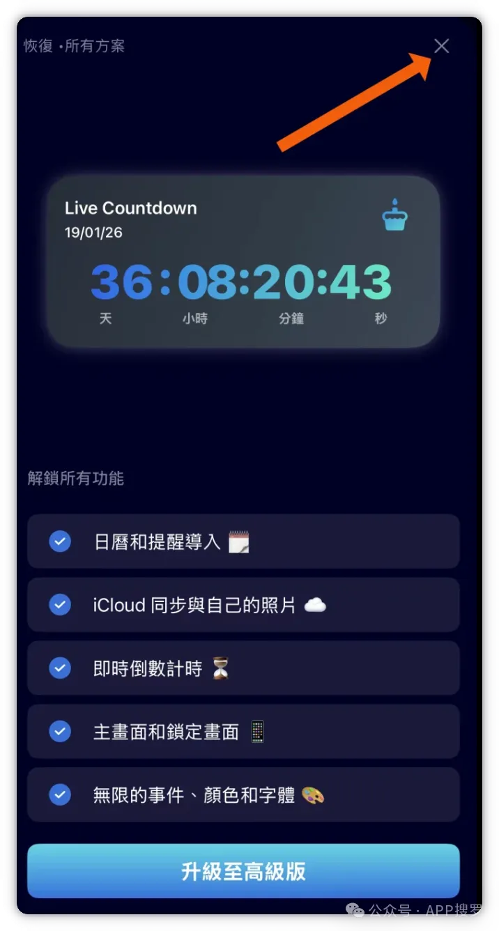 点击右上角的取消,点击X,这时候就会出现第二个订阅界面