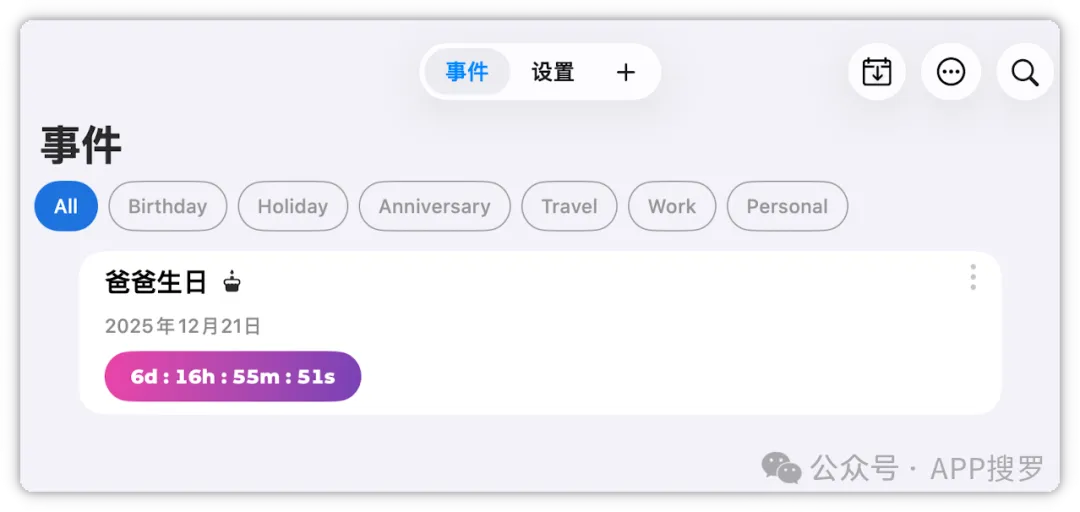 而且你可以设置小组件,无论是在手机端、手表端还是Mac端都可以设置,这样你就可以在苹果任何设备随时查看重要事情倒计时。