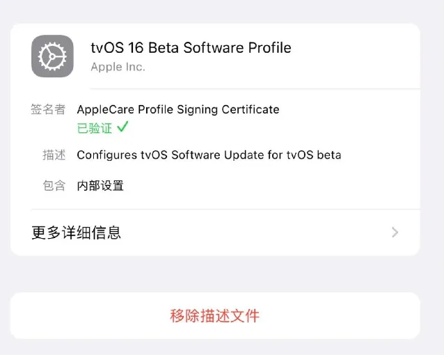 其实是因为先前的屏蔽文件已经到期了,但针对最新版iOS16.3的 tvOS16 Beta屏蔽更新检测描述文件也已经新鲜出炉。