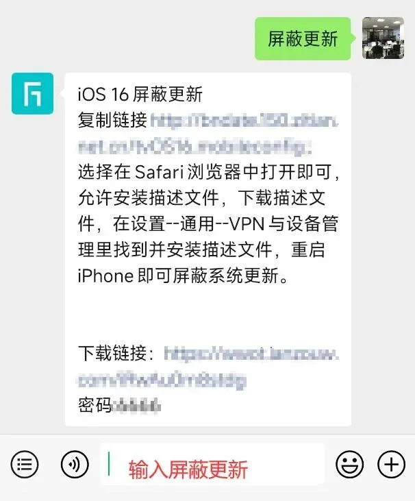 复制链接后直接粘贴在Safari浏览器中安装,完美屏蔽iOS系统更新,如果你之后想收到更新,直接删除描述文件即可。