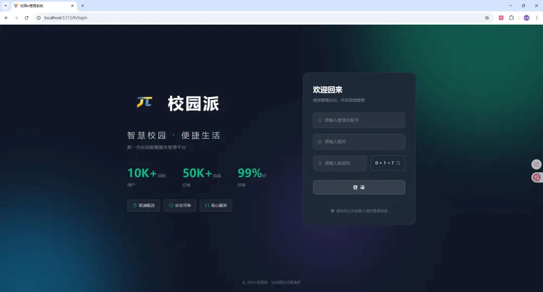 这是一个完整的校园跑腿服务平台,采用前后端分离架构,包含鸿蒙移动端(HarmonyOS)、Web管理后台和后端服务三大模块。系统为校园内的学生提供快递代取、食堂打饭、商品代购、排队占座等多种跑腿服务,实现了任务发布、接单、执行、评价、纠纷处理等完整业务流程。