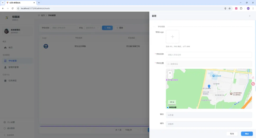 学校管理: 管理学校信息、配送区域、POI点位(超级管理员)