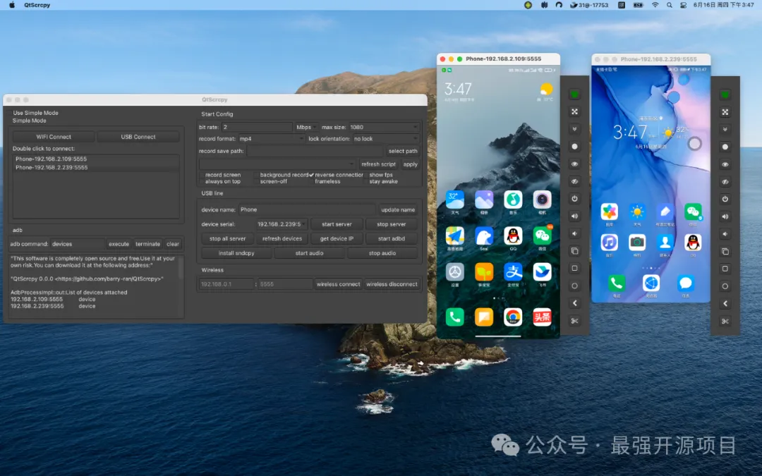用户可以编写脚本来将键盘和鼠标操作映射到手机上的触摸和点击,支持自定义脚本,无论是刷TikTok还是玩其他一些游戏,都能轻松搞定。如果你是开发者或者需要批量操作多台设备,QtScrcpy的组控功能绝对能帮到你。它允许同时控制所有连接的手机,方便批量操作,大大提高工作效率。首先,你的Android设备需要满足Android API = 21(Android 5.0),并且设备需要启用ADB调试。接下来,你可以根据你的操作系统,选择Windows、Mac OS或Linux的安装部署方式。具体的安装步骤和部署方式,都可以在开源项目主页上找到。如果你对QtScrcpy感兴趣,或者想要了解更多信息,可以直接访问它的开源地址:https://github.com/barry-ran/QtScrcpyQtScrcpy作为一款开源软件,不仅功能强大,而且完全免费。它的存在,让Android设备的显示和控制变得更加简单和高效。