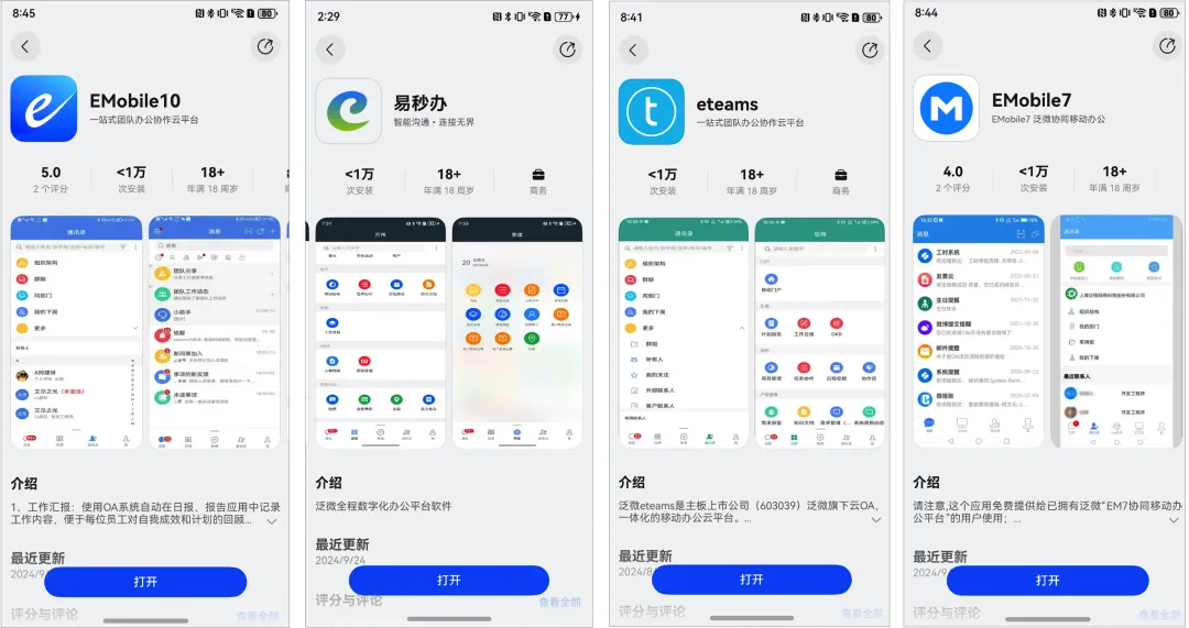 泛微和华为鸿蒙在产品、市场、生态等多方面合作已久。作为鸿蒙生态深度合作伙伴,从鸿蒙2.0到鸿蒙NEXT,泛微与华为不断深化合作。目前泛微成为Harmony OS NEXT开发服务商,泛微e-mobile7、e-mobile10、eteams和易秒办等4款APP已上架Harmony NEXT应用市场。(泛微移动APP上架鸿蒙市场)