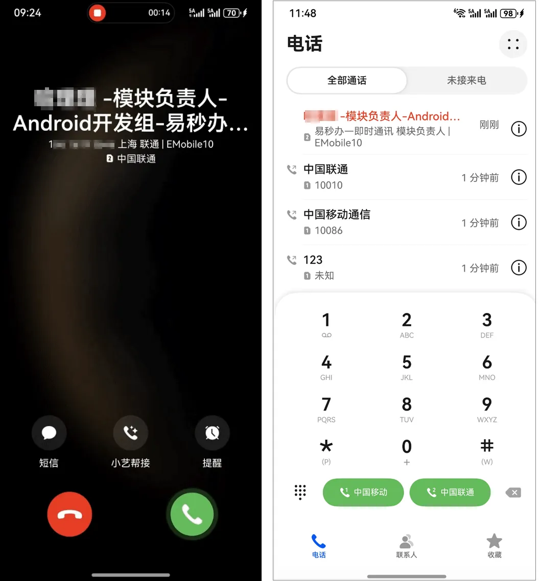 传统办公场景中,员工需手动将同事信息存入手机通讯录,既繁琐又易遗漏。现在EMobile10 实现了无需预存联系人即可实时识别OA系统组织内来电的功能。