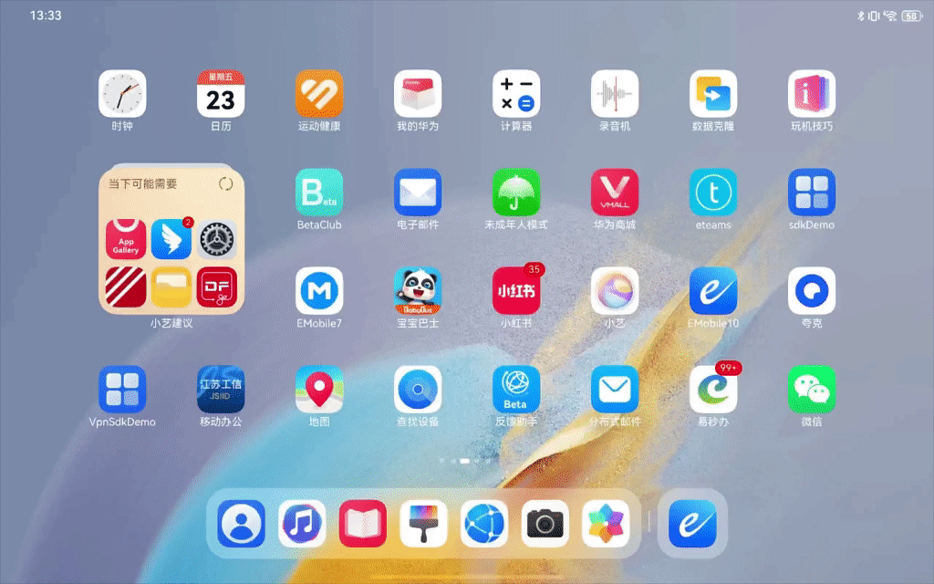 当手机与平板设备处于同一WiFi网络时,手机上正在访问的应用可实时流转至平板设备。平板端EMobile10 APP底部导航栏会自动提示应用接续状态,点击提示即可无缝切换至手机端当前打开的应用页面,无需在平板端手动查找应用和启动应用,实现大屏高效查阅、无缝跨屏浏览。