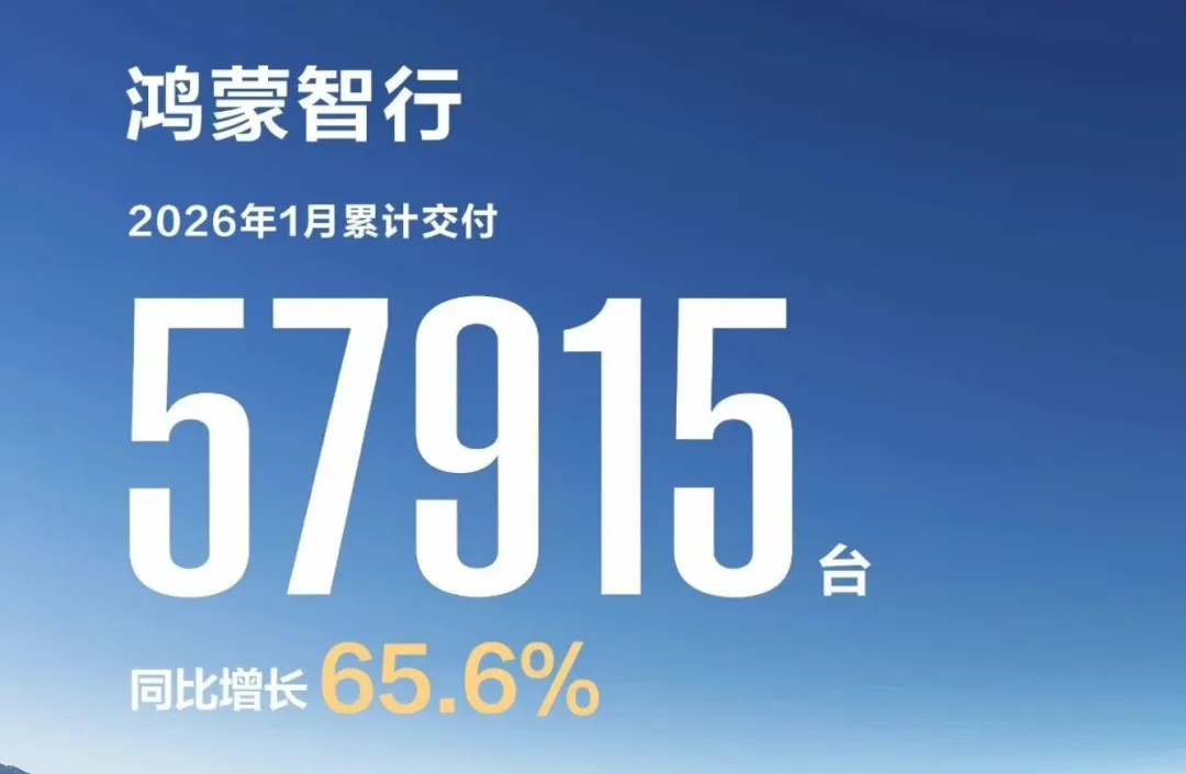 二月伊始,各大新势力车企如期交出2026年首份月度销量成绩单。鸿蒙智行以57915辆的交付量稳居榜首,同比增长65.6%,但其环比下降35.3%的走势则与行业整体趋势保持一致。