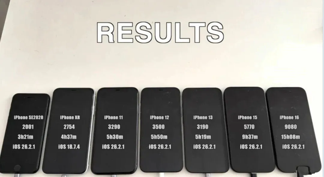 有博主对6款主流 iPhone(SE2、11、12、13、15、16)进行了长达 24 小时的地狱级续航与性能测试。