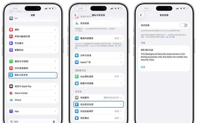 更让人意想不到的是,这一次苹果推送的,其实并不是大家期待已久的 iOS 26.3 beta 2,而是一个全新玩法的“后台安全改进”——连版本号都带上了独特的 (a) 编号,而且紧贴 26.3 的发布节奏,用如此“低调而神秘”的姿态现身,实在让人觉得匪夷所思!到底什么是后台安全改进?它和以往那些普通的系统安全补丁或者“快速安全响应”有什么不同?这些疑问在果粉社群中持续发酵,甚至有用户发帖直呼“莫非是大招前的小考验”?难道这一次苹果真要重新定义我们的系统安全感吗?