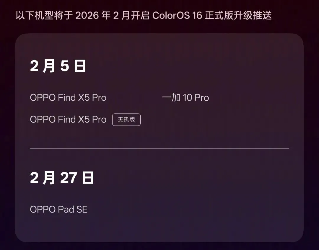 包括 Find X5 Pro 天玑版也已推送升级 ColorOS 16 正式版。