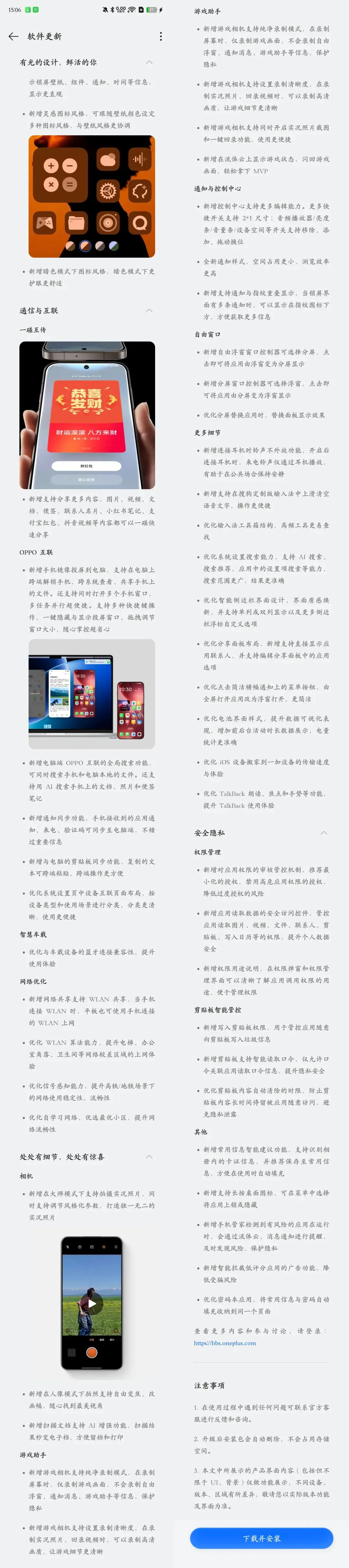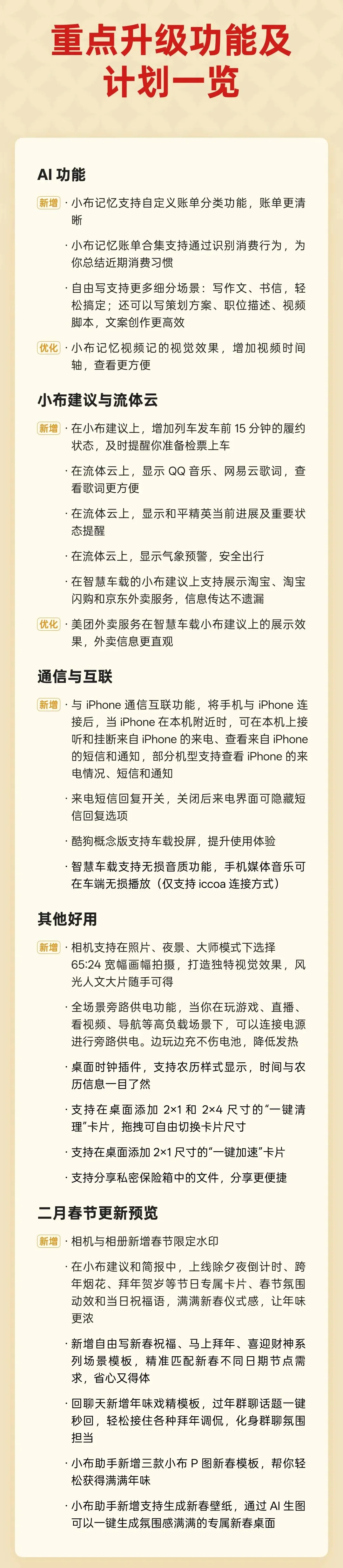 更新内容与以往历史推送的机型类似,完整的 OTA 更新日志内容如下图: