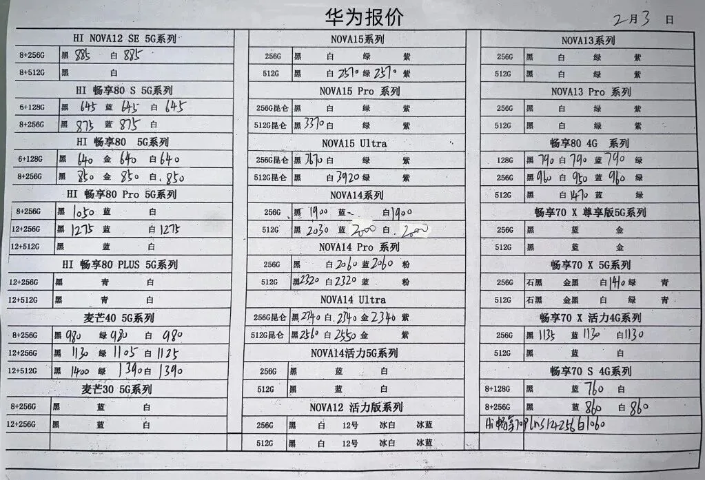 华为平板手表和三星报价不常更新