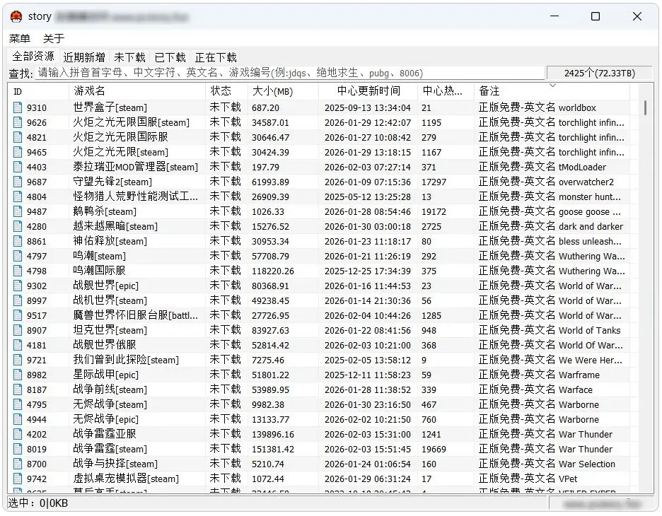 这是一款开源免费的PC游戏下载工具,它内置了2425款热门的PC游戏,游戏总大小达到了72TB,只要是你想要玩的PC游戏,在这个工具里面基本上都可以找到,并且每日都还在持续更新新的游戏,非常适合PC游戏爱好者使用。