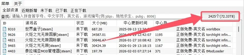这款工具内置了2425款游戏,游戏的总大小也达到了72.33TB,可以说游戏资源非常丰富。