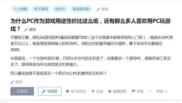 写这篇文章的起因是来源于知乎上面的一个提问:”为什么PC作为游戏用途性价比这么低,还有那么多人喜欢用PC玩游戏?“这个问题其实很具有普适性,许多游戏玩家心中都会抱有这样的疑问的。