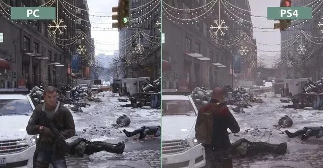 主机画面弱在光影与远景细节方面(注意远处天空与建筑剪影)