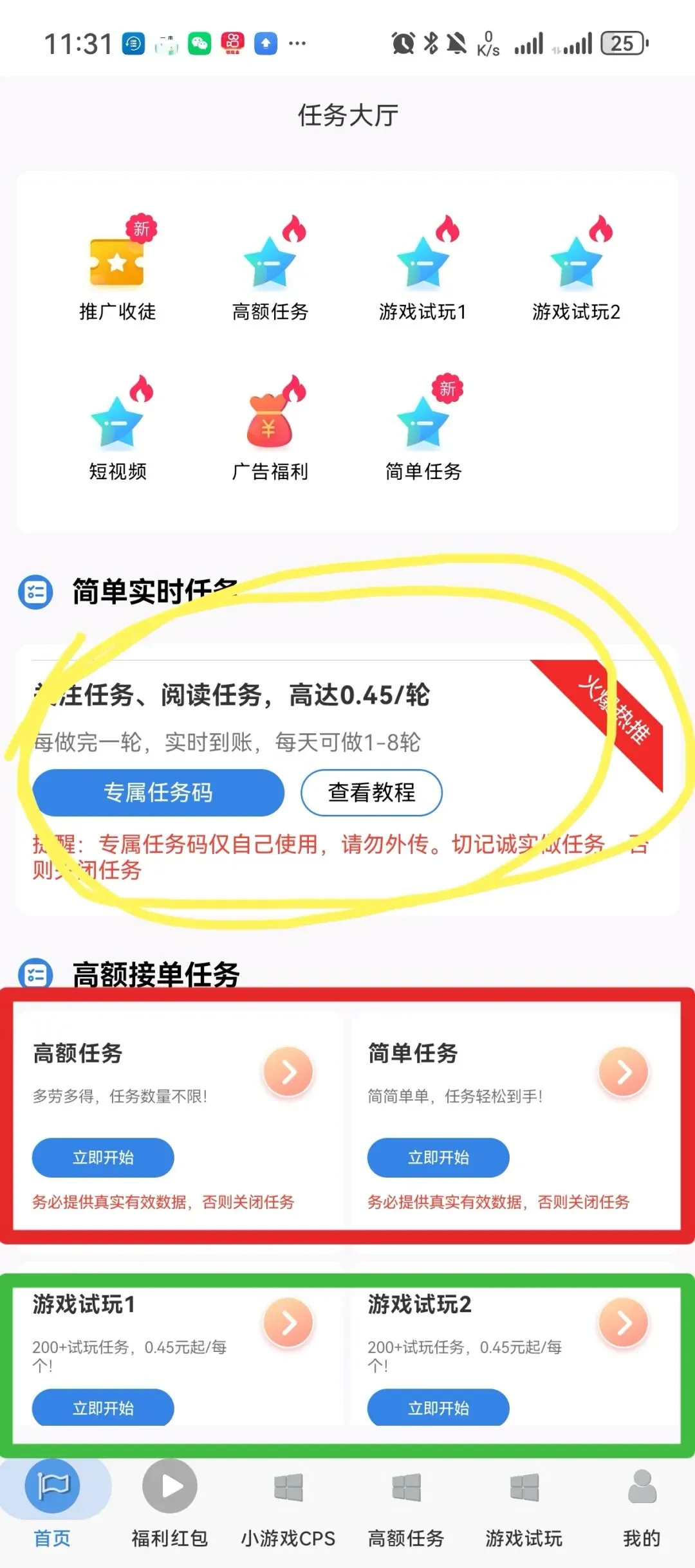 这是一个可阅读赚/悬赏赚/试玩赚/关注赚等多重模块玩法一体的APP