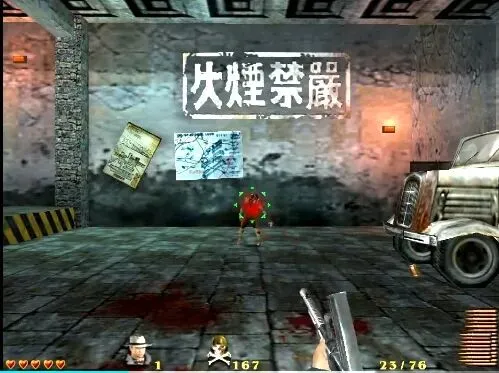 进入金库,左右竟然近距离各站着一个家伙(真是幽默),然后又是几个鬼子带着一群浪人,这里敌人都离得近,所以不能犹豫,枪枪点杀,左边圆门后面还有一个,右边也有三个。最后小BOSS,关键是救出人质,不然鬼子和浪人会不断出来,把准心放在屏幕正中到偏上一些之间,基本上可以保证枪枪爆头。人质救出后鬼子竟然还没死,说装了炸弹,一枪爆头吧。