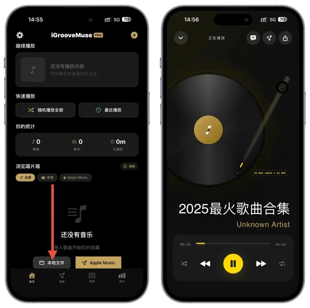 兼容主流音频格式,支持本地文件及Apple Music同步,