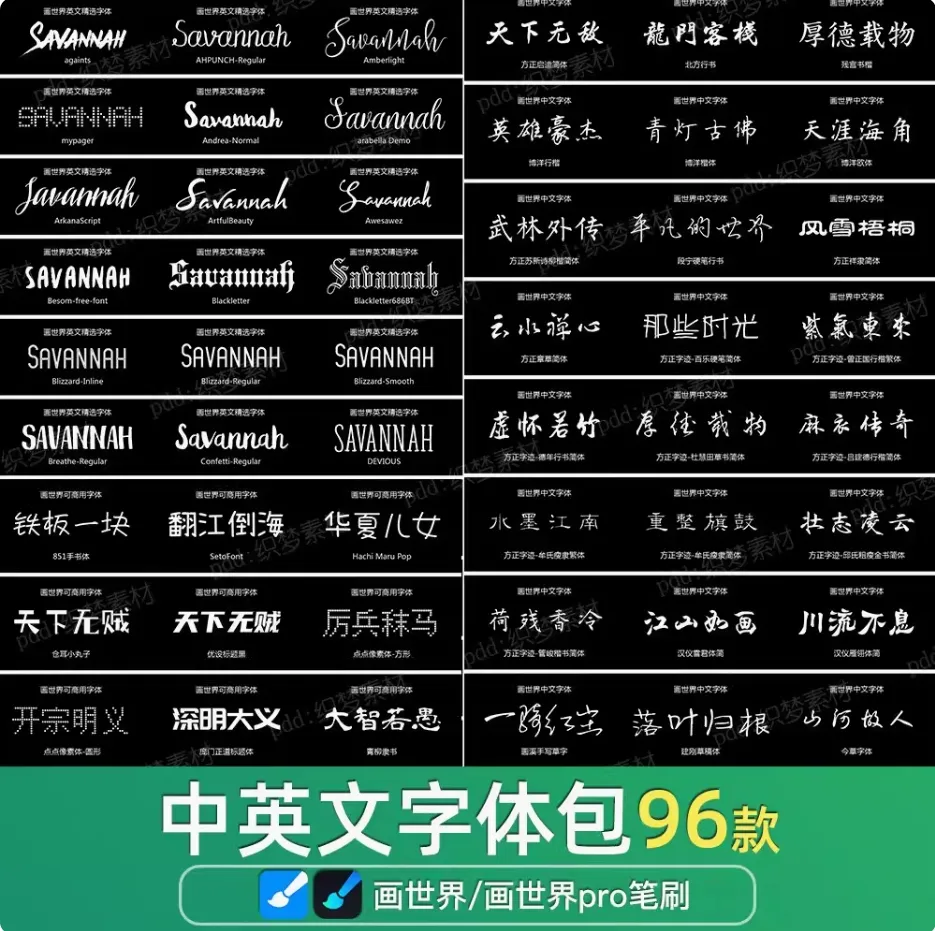 所以本期小琦精心整理了96款画世界字体合集,中英文都有,还有可商用字体哦!