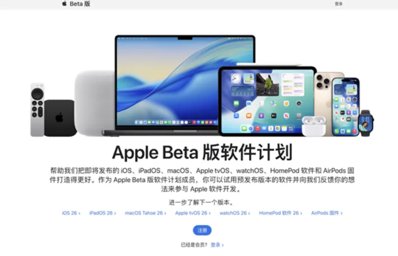 1. Safari搜索“Apple Beta版软件计划”,进入官方页面点击注册,登录Apple ID;
