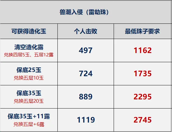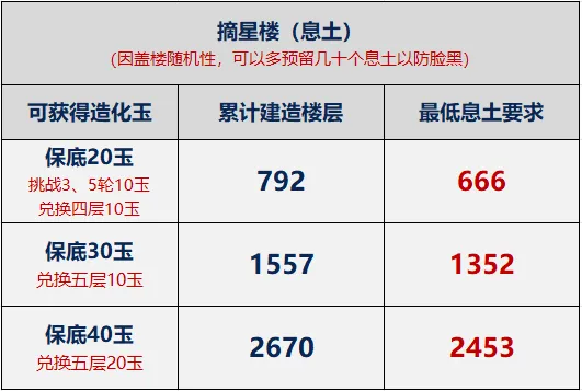 特别注意:因为奇遇探宝和摘星楼获取兑换道具的随机性,非酋可能会遭遇最大推荐数量兑换不到造化玉的情况!