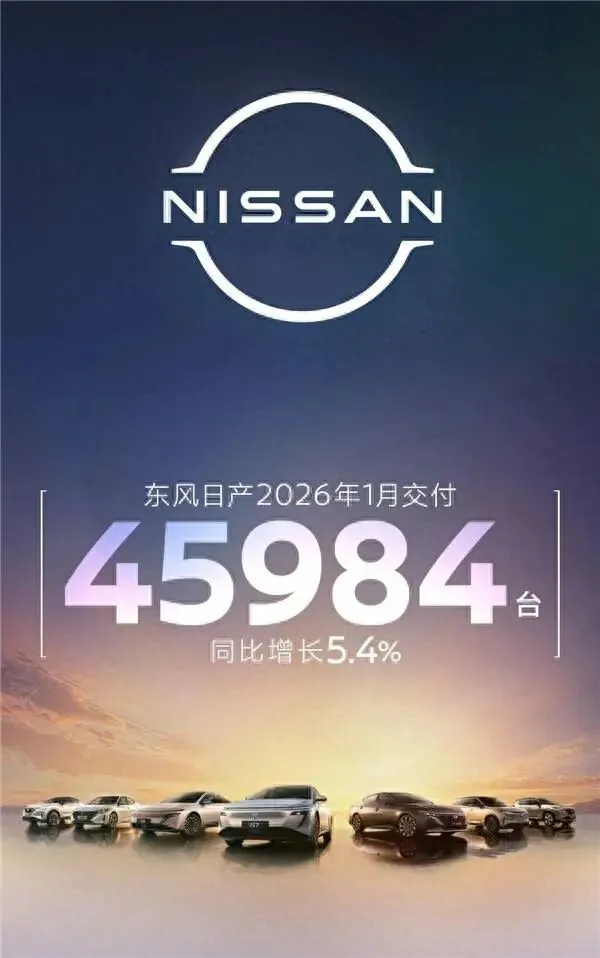 2026年1月,国内合资车市分化加剧,多数品牌销量承压下滑之际,东风日产逆势突围,交出一份亮眼成绩单,以45984台的全车系交付量实现同比增长5.4%,同时在与东风本田的同台比拼中占据上风,成为合资阵营的“韧性代表”。