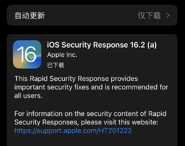 今天上午,苹果还推出了一个只有几十兆的iOS16.2(a)更新包。