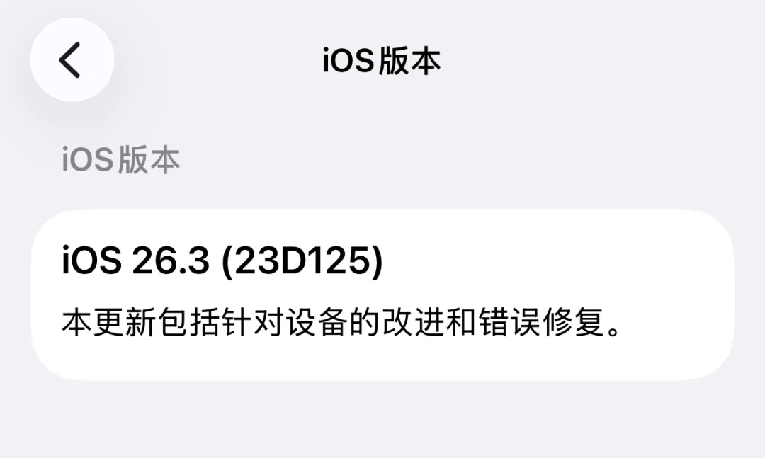 其中 iPhone 用户们比较关心的 iOS 26.3 RC 版的版本号是