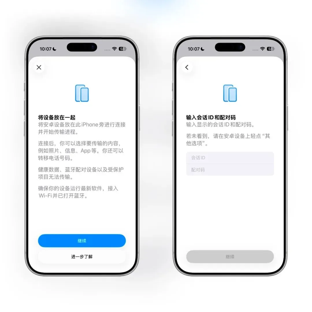 通过这项功能可以将 iPhone 通过扫码或者配对码的方式连接安卓手机,然后将照片、信息、App、电话号码等资料传输到安卓手机。