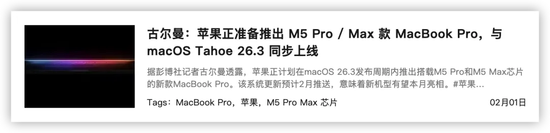 同时,苹果还面向旧款机型推送了 iOS 18.7.5 RC 版更新。需要注意的是,RC 版的内部版本号通常与正式版相同。按照目前的更新节奏,iOS 26.3 和 iOS 18.7.5 正式版最快将在下周到来。官方支持界面中,原本应为 iOS 26.3 RC 的系统标签,被误写成 26.3 iOS RC。整体来看,无论是 iOS 26.3 RC,还是 iOS 18.7.5 RC,均未带来任何新功能变化。官方更新日志显示,新系统提供了重要的错误修复和安全更新。在 iOS 26.3 此前的测试阶段,苹果陆续上线了通知转发、数据迁移至安卓以及限制蜂窝获取位置(仅支持国外)等功能。不出意外的话,以上新变化也将在后续发布的正式版系统中上线。此外,外媒 MacRumors 还在 iOS 26.3 RC 版系统中,发现了关于苹果新品的踪迹。内部代码显示,M5 Max 和 M5 Ultra 的代号和平台名称均已系数曝光。此前,标准版 M5 芯片的平台名称已被确认为 H17G,代码中的「17」明确指向了 M5 家族。而苹果对芯片的命名方式向来等级森严,比如后缀「G」代表标准版,「C」代表 Max,而「D」则代指 Ultra 版。本次曝光的两款芯片,平台名称分别为 H17C 和 H17D,基本可以确定是 M5 Max 和 M5 Ultra。结合此前外界爆料,搭载高端 M5 芯片的新款 MacBook Pro,多半会随 macOS 26.3 正式版一同登场。这样来看,最快下周,我们就能与这款新机正式见面了。据苹果开发者官网发布的最新公告,自今年 4 月 28 日起,将上调提交至 App Store 的应用的 SDK 门槛。届时,App Store 的所有应用都必须使用 iOS 26 SDK 或更高版本构建。简单来讲,苹果正在督促开发者们全面拥抱 iOS 26。