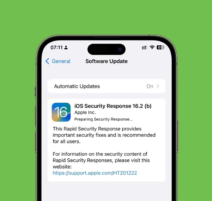 iOS 安全响应 16.2 (b) 更新可直接通过快速安全响应安装重要的安全补丁,无需安装完整的iOS更新包,通过快速安全响应,安装的速度也快很多。