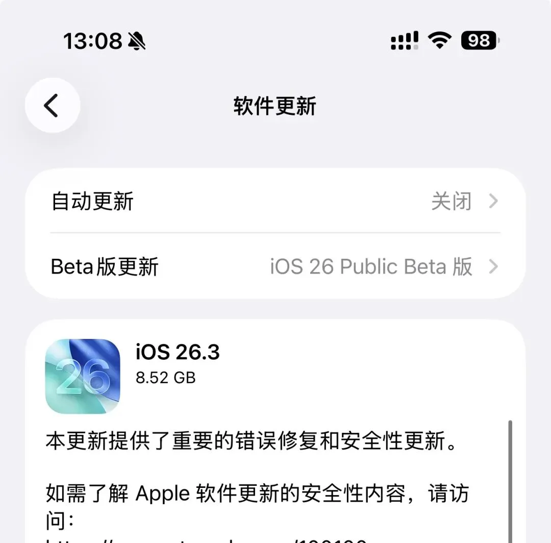 这是iOS 26.3的候选发布版本,意味着正式版即将发布(预计下周)。有趣的是,更新介绍为中文,之前RC版一直是英文介绍。
