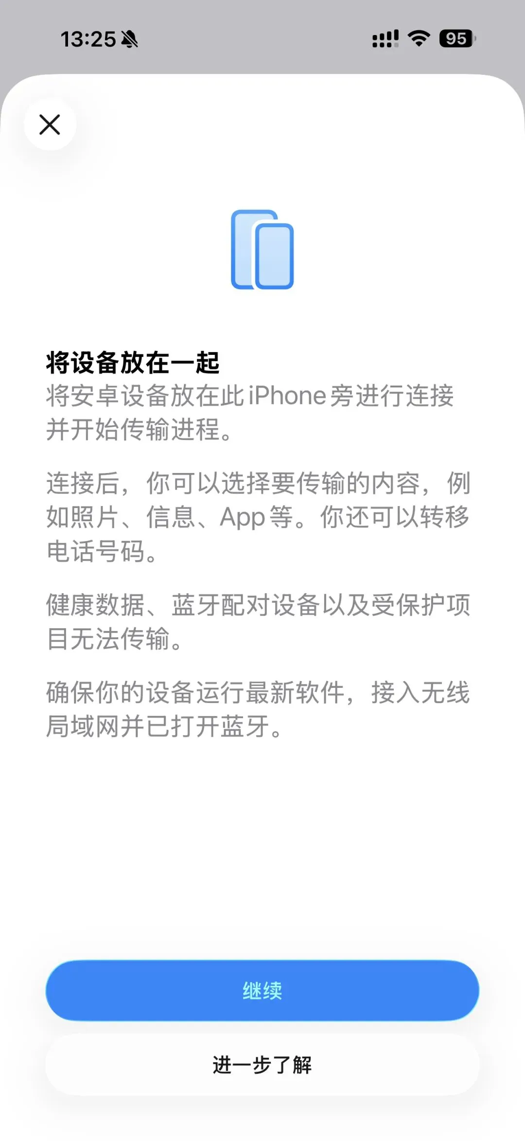 这是本次更新的核心功能。在设置-通用-传输或还原iPhone中新增了"转移至Android"选项,支持iPhone与安卓设备之间通过Wi-Fi和蓝牙无线传输数据。可迁移内容包括:照片、短信、备忘录、应用列表、密码、电话号码等核心数据(健康数据、蓝牙配对记录等敏感信息除外)。传输过程无需第三方应用,通过设备靠近扫码或输入配对码即可启动。