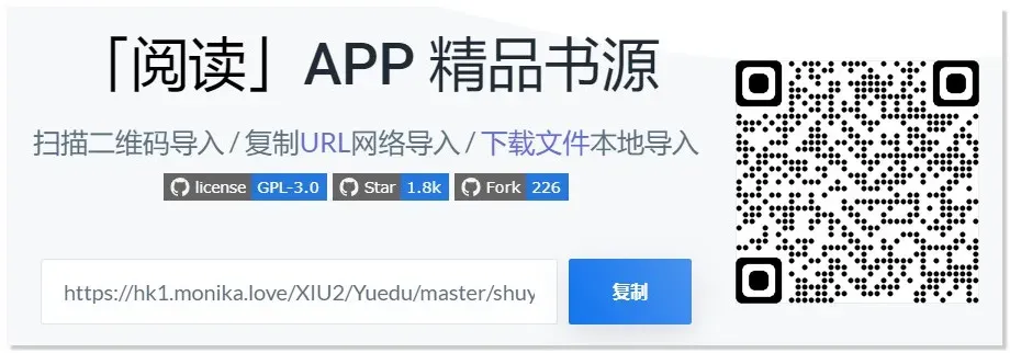 所以这里这个「阅读」APP 精品书源就正好比较合适,推荐大家使用:https://yuedu.xiu2.xyz/