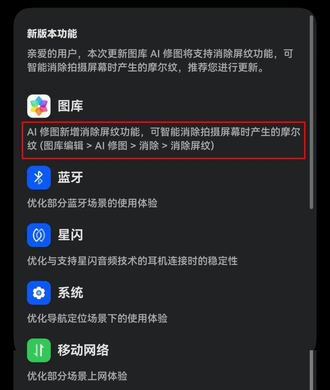 这次更新特意优化了蓝牙连接,尤其是针对支持星闪音频技术的耳机做了稳定性增强。