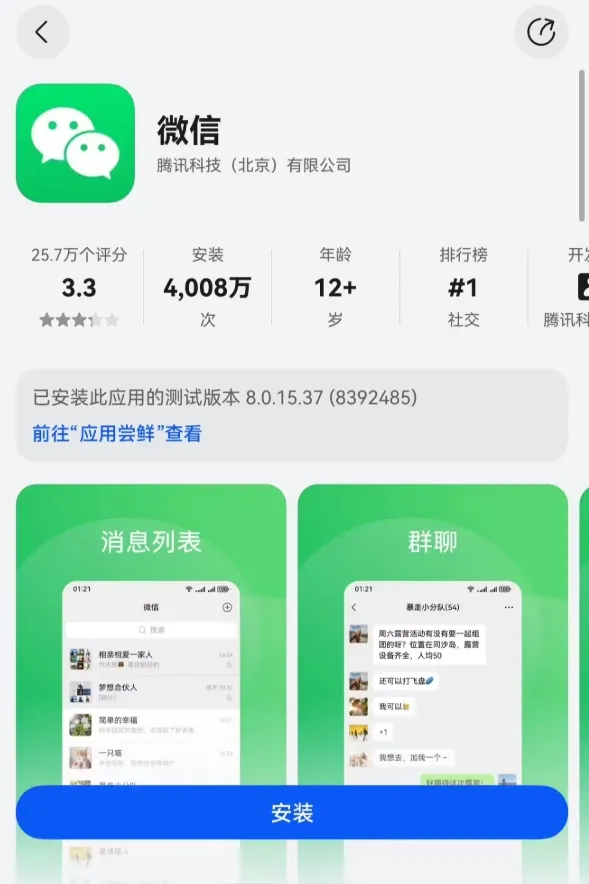 微信鸿蒙版 App 安装量今日正式突破 4000 万次(已达 4008 万次)。在此之前,其安装量已于去年 12 月突破 3000 万次、10 月突破 2000 万、7 月突破 1000 万。微信鸿蒙版 App 于去年 1 月正式登陆华为鸿蒙应用市场 App Gallery,已支持基础通讯、社交、微信支付、公众号、小程序、视频号、直播等主要功能。目前,微信正式版 App 已更新至 8.0.14.42 版本,更新日志显示为“修复了一些已知问题”。今年 1 月末,华为应用市场 App Gallery 显示,小艺输入法安装量正式突破 4000 万次,这意味着 HarmonyOS 5 / 6 终端设备数也已突破 4000 万。