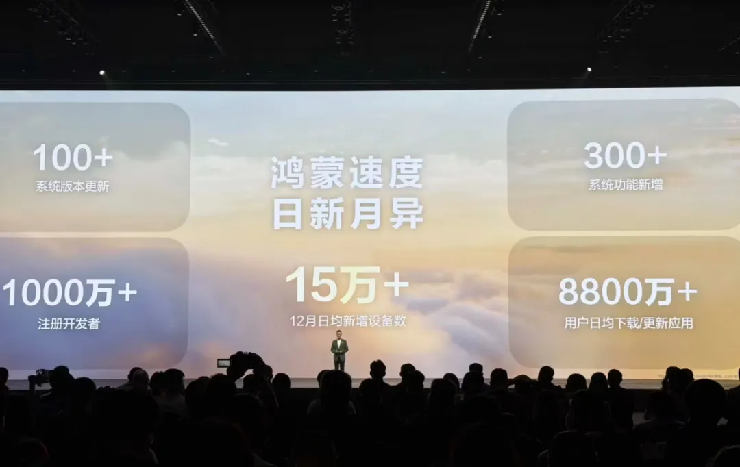 在 2025 年 12 月 22 日的 nova 15 系列及全场景新品发布会上,华为终端 BG 首席执行官何刚介绍:鸿蒙系统功能新增超 300 项、系统版本更新超 100 次、注册开发者超 1000 万、用户日均下载 / 更新应用超 8800 万次。12 月,HarmonyOS 系统日均新增设备数超 15 万。