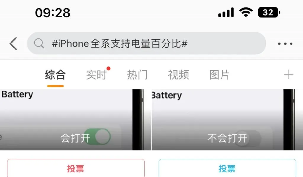 而iPhone的电量百分比显示就没有那么多花样了,其百分比数字在图标内,很容易填满整个白色的电池图标,让用户误以为电量是满的。希望苹果手机后续能像安卓手机一样,提供更多电量百分比显示的选项。