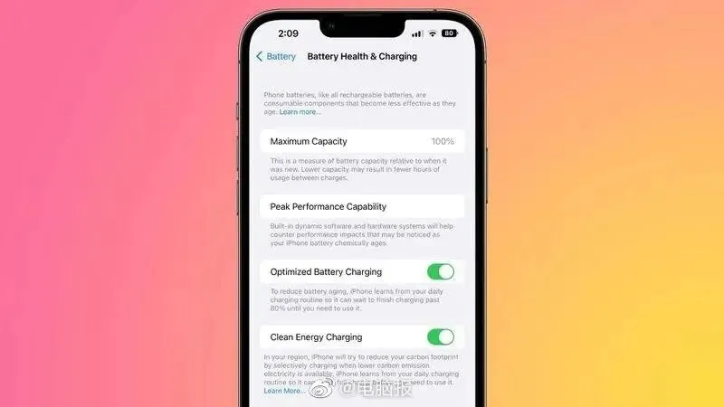 除此之外,苹果之前还在iOS 16正式版中增加了清洁能源充电功能,以减少iPhone的碳排放。