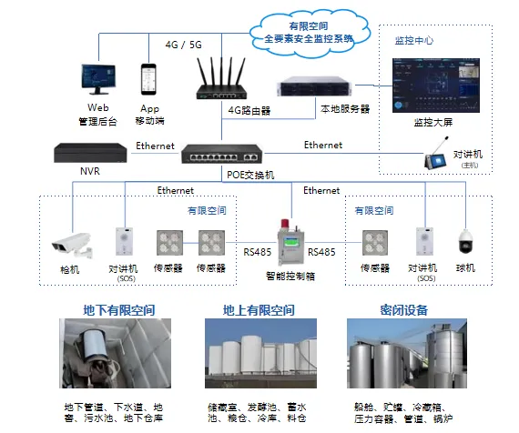 有限空间安全解决方案依托鸿蒙智能控制箱整合多传感器与智能摄像头,凭借AI计算实时分析作业风险与识别人员危险行为;协同安全云平台深度关联多维感知数据,当气体浓度超限或含氧量过低时,实时触发声光告警并同步推送告警至多方责任主体;SOS装置支持对讲、广播及一键告警,监控大屏可全局可视化现场实时状态,实现有限空间“监测-预处理-预警-处置-备案”全闭环管控,保障工程作业安全。