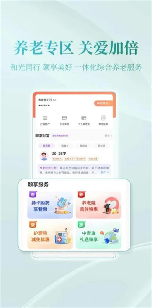 光大手机银行全面升级养老金融服务专区,为客户提供“社保、企业年金、个人养老金”三位一体综合养老金融服务。打造“颐享服务”专区,整合光大集团旗下光大养老、中青旅、嘉事堂等特色产品,提供“金融+医养康旅”光大特色专属服务。全面改版“简爱版”,化繁为简,助力银发用户乐享便捷服务。