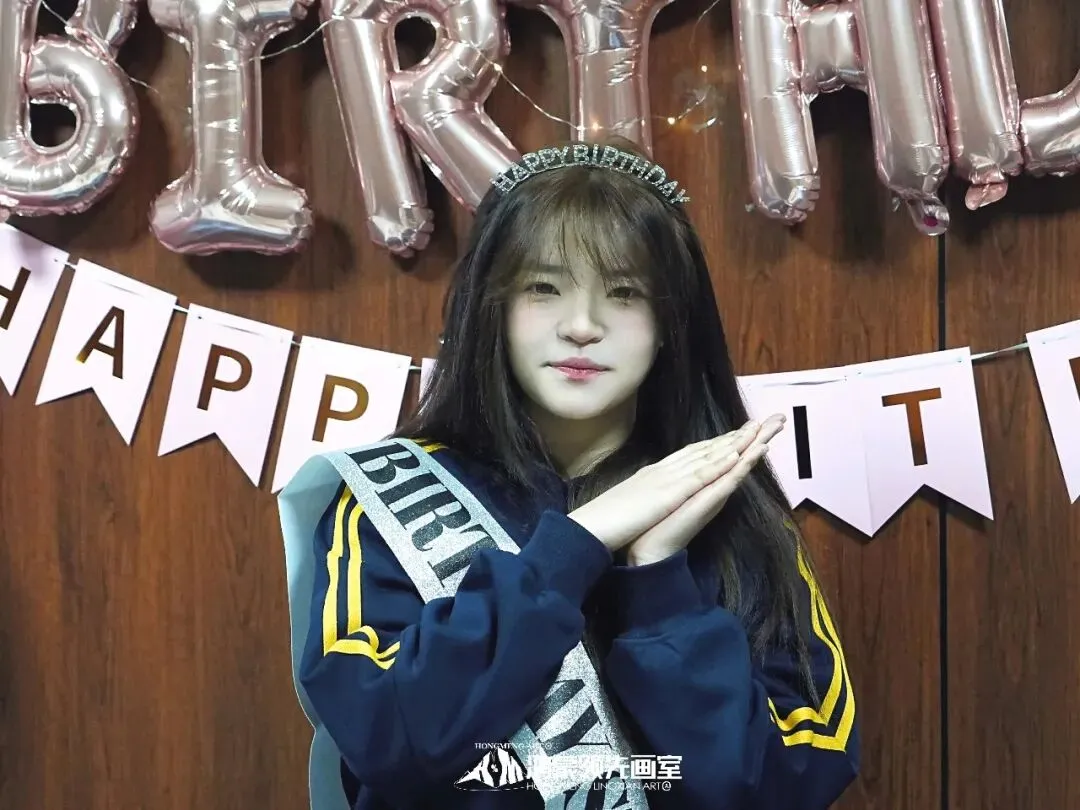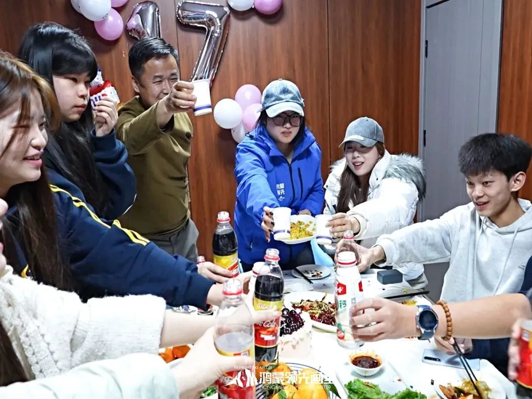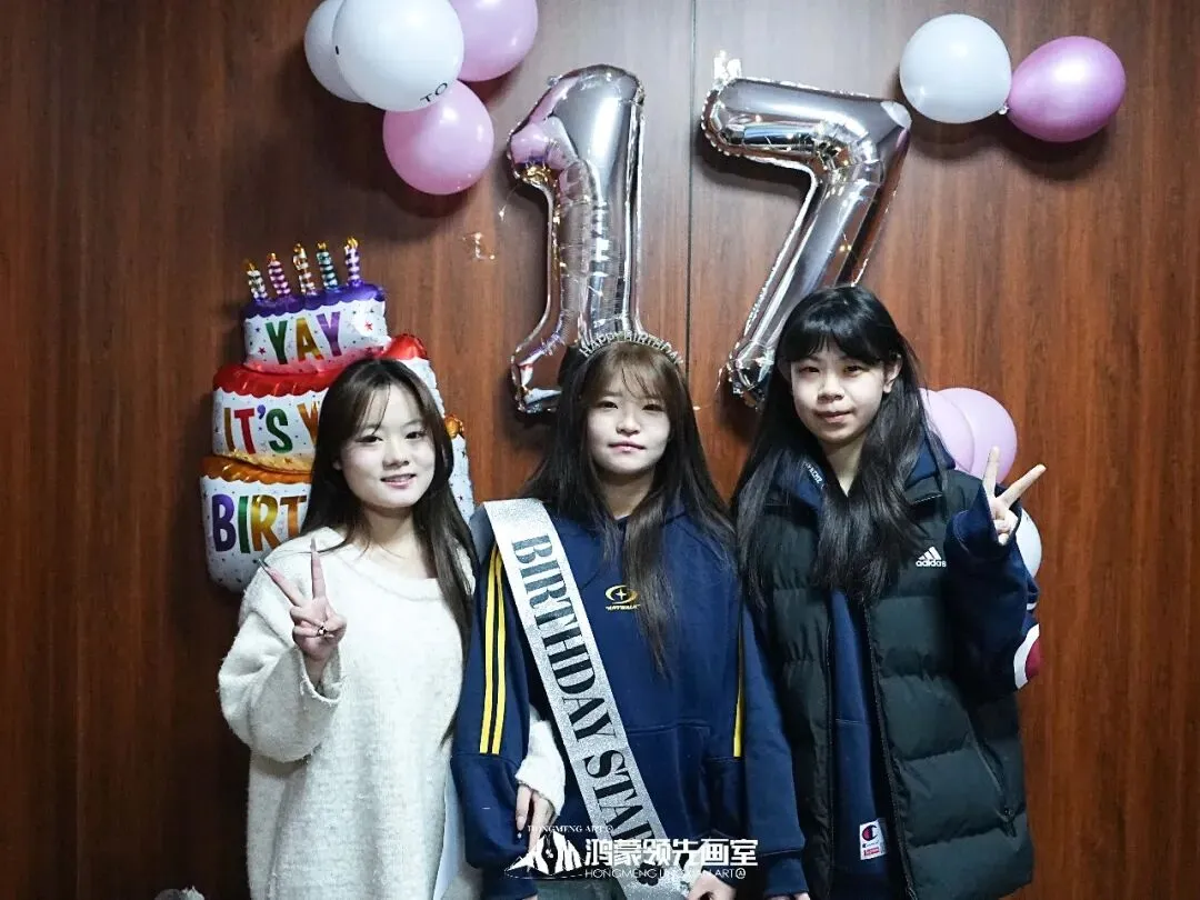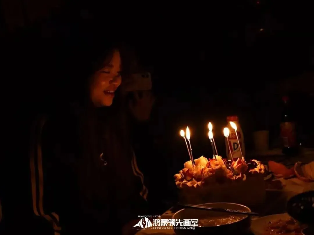 灯光暗下的瞬间,你以为是电路故障——却看见厨房的门缓缓打开,烛光摇曳,映着每个人微笑的脸。熟悉的生日歌响起,这一次,整个画室大家庭为你而唱。“许愿吧。”你闭上眼的刹那,想起这一年在画室的晨昏:削短的铅笔,磨破的纸,调了又调的颜色…而此刻所有这些,都化作了耳边最温暖的歌声。