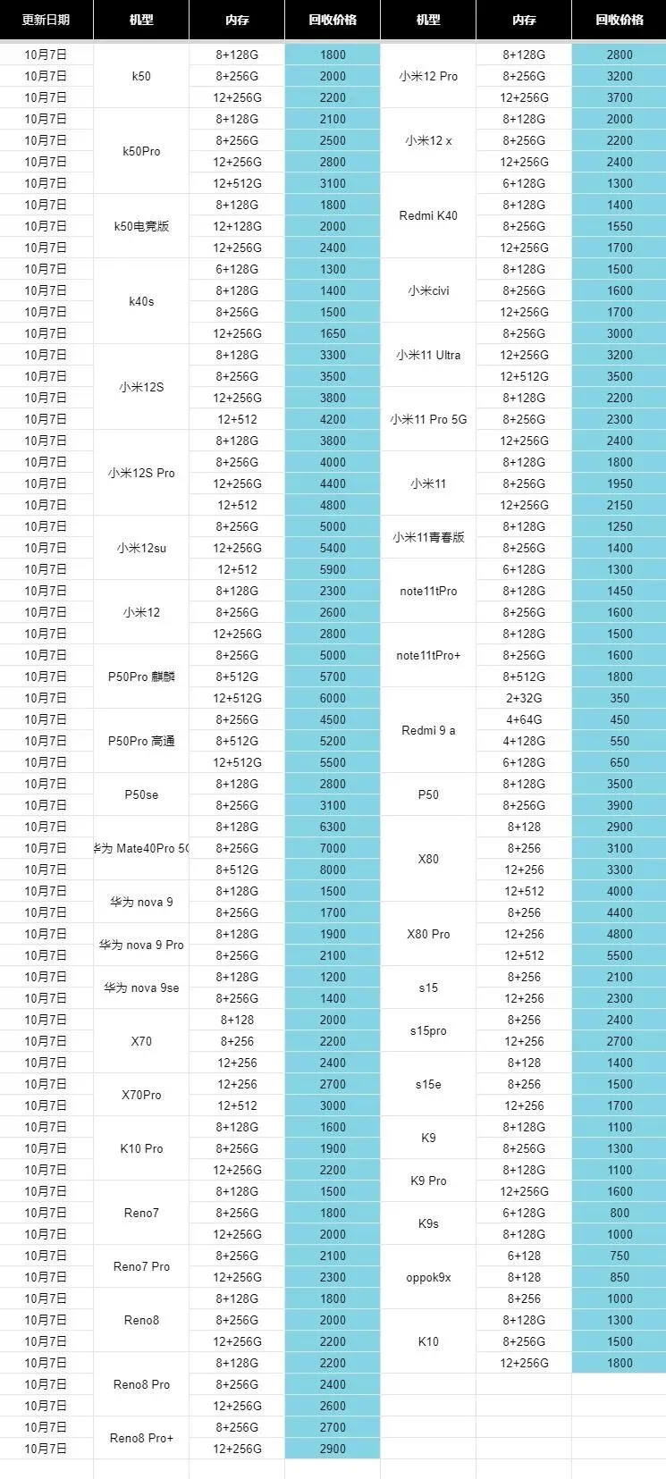 二手手机回收报价单 | 安卓机回收置换新机