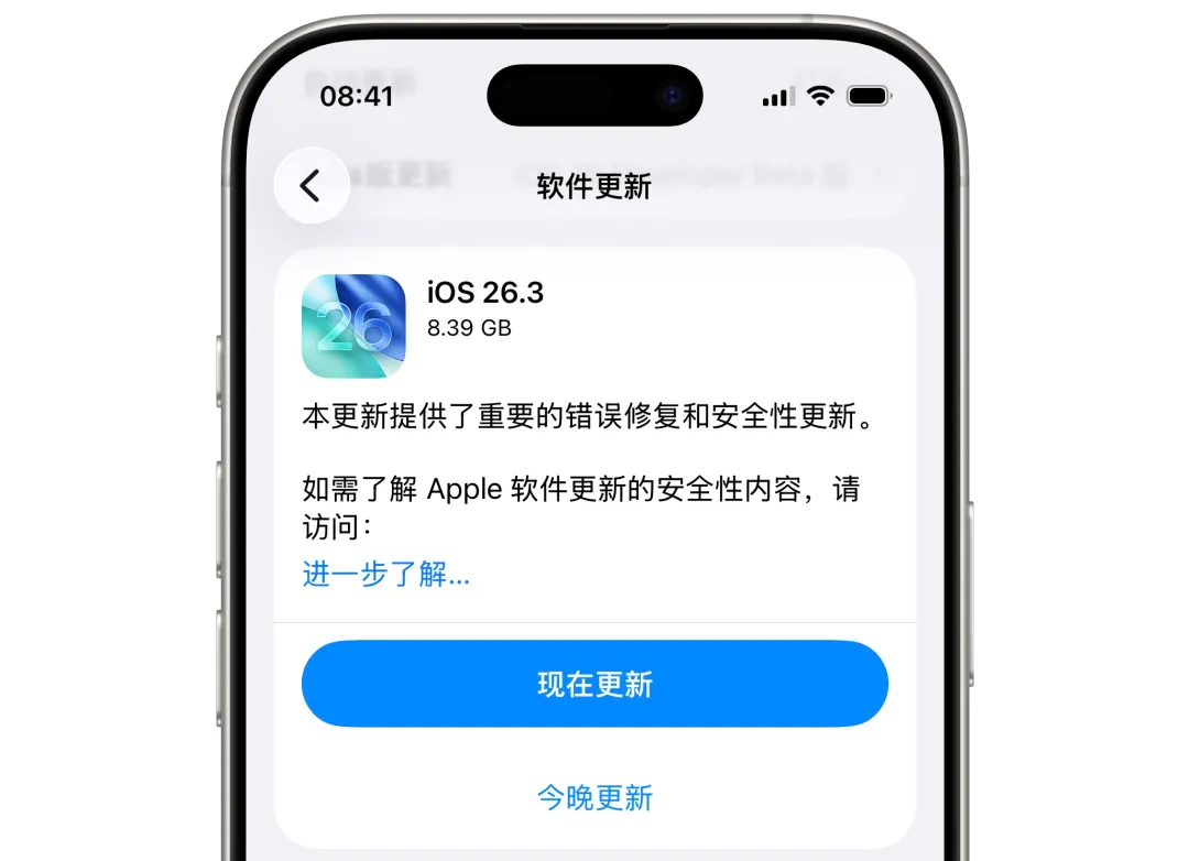 如果没有出现重大问题,iOS 26.3 正式版和iOS18.7.5正式版大概率会在下周推送,最快时间点可能是 2 月 10 日凌晨。